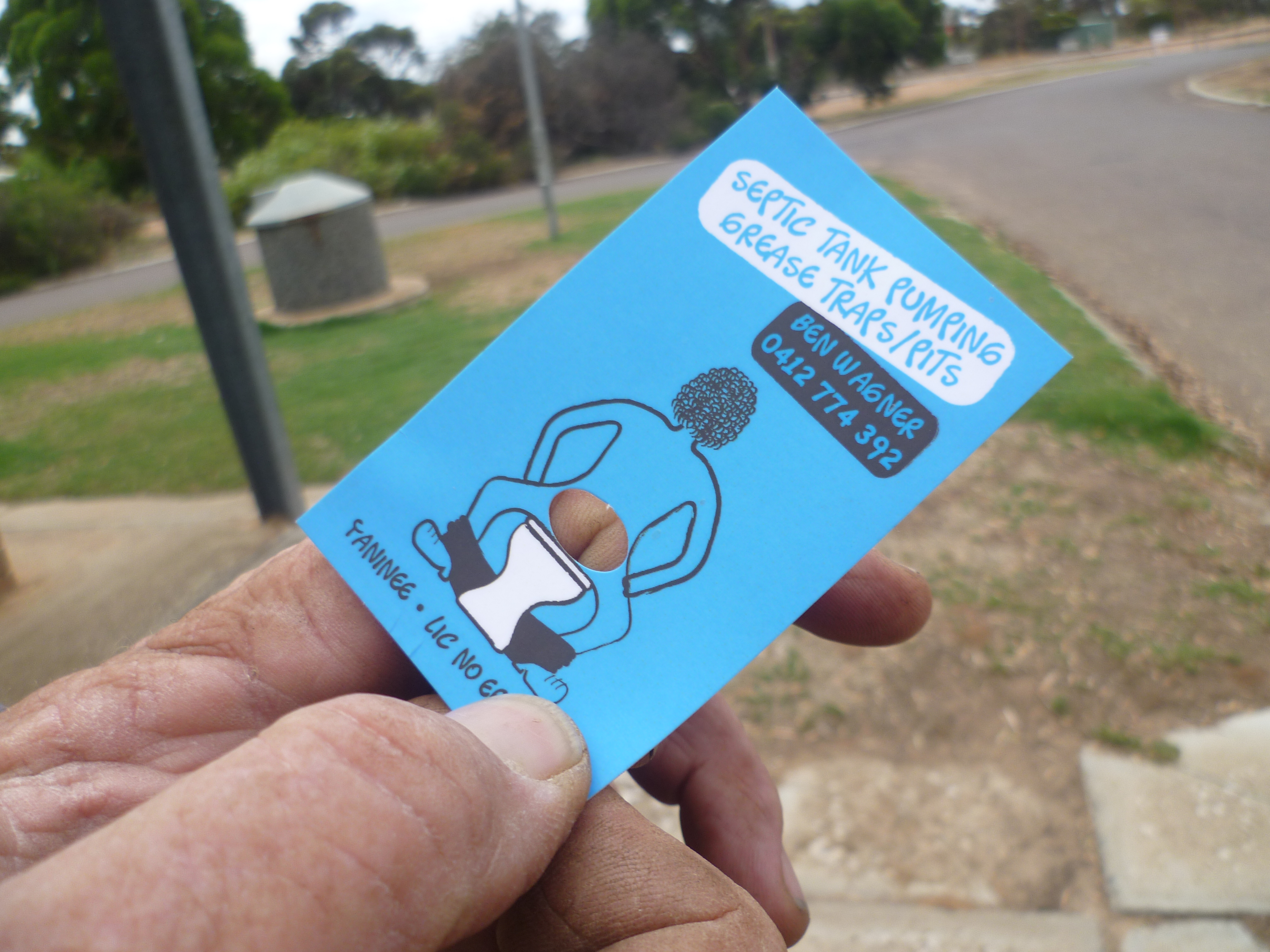 There must be something about working with septics and toilet waste that gives you an honest and down-to-earth sense of humour: such a clever and funny business card. Ben says he doesn’t need to get so many printed as the people he gives them to just want to keep showing them to other people. Now there’s a trick worth remembering. I couldn’t help but fall into his trap!