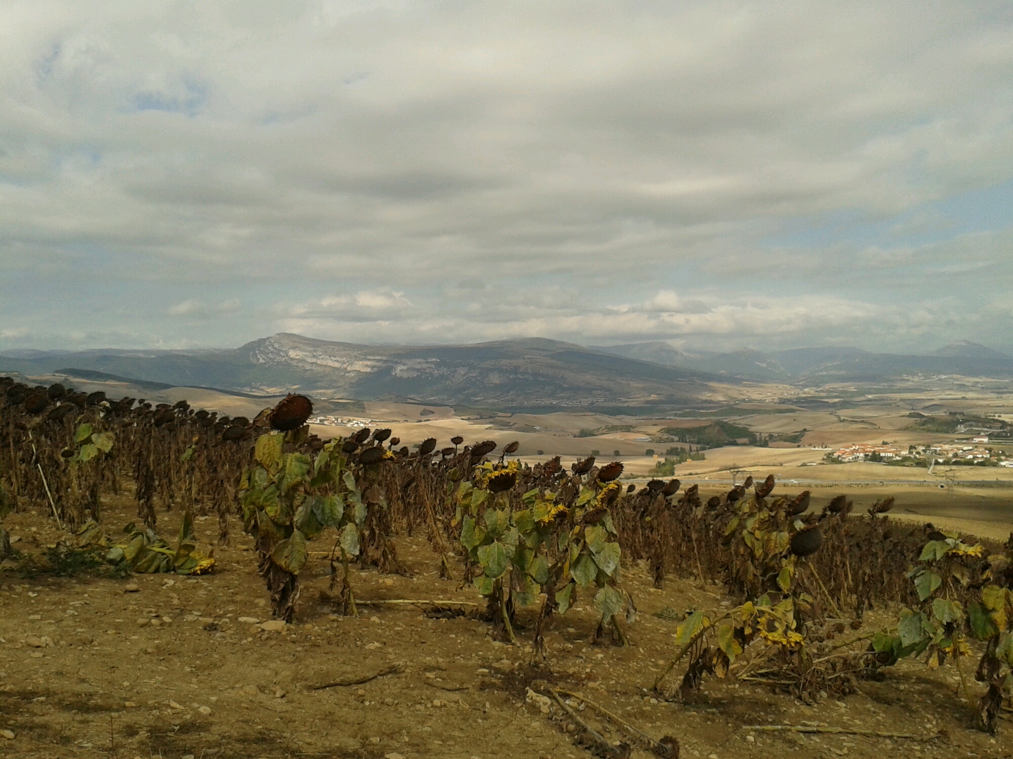 Day 4 added another 25 kms to my Camino and took me from Pamplona to Puentes de la Reine. Pamplona was still partying when I left at 8 am and the streets were awash with rubbish, glass and spilt drinks. Once out of Pamplona the views opened out to farmland with fields of sunflowers being a common crop. The sunflowers, heads bowed to where they last followed the sun, made an attractive foreground to the valley and mountains beyond. Then over another pass, down a hellish steep pebbled slope (that caused havoc with my toes) and into the next valley. Puente de la Reine had a few bulls running but I did not go and watch. I had learnt my lesson from Pamplona that my feet are not yet up for extra sightseeing after the days walk! A meal, a couple of ciders, some delightful banter with a young Latvian and a German and then to bed.