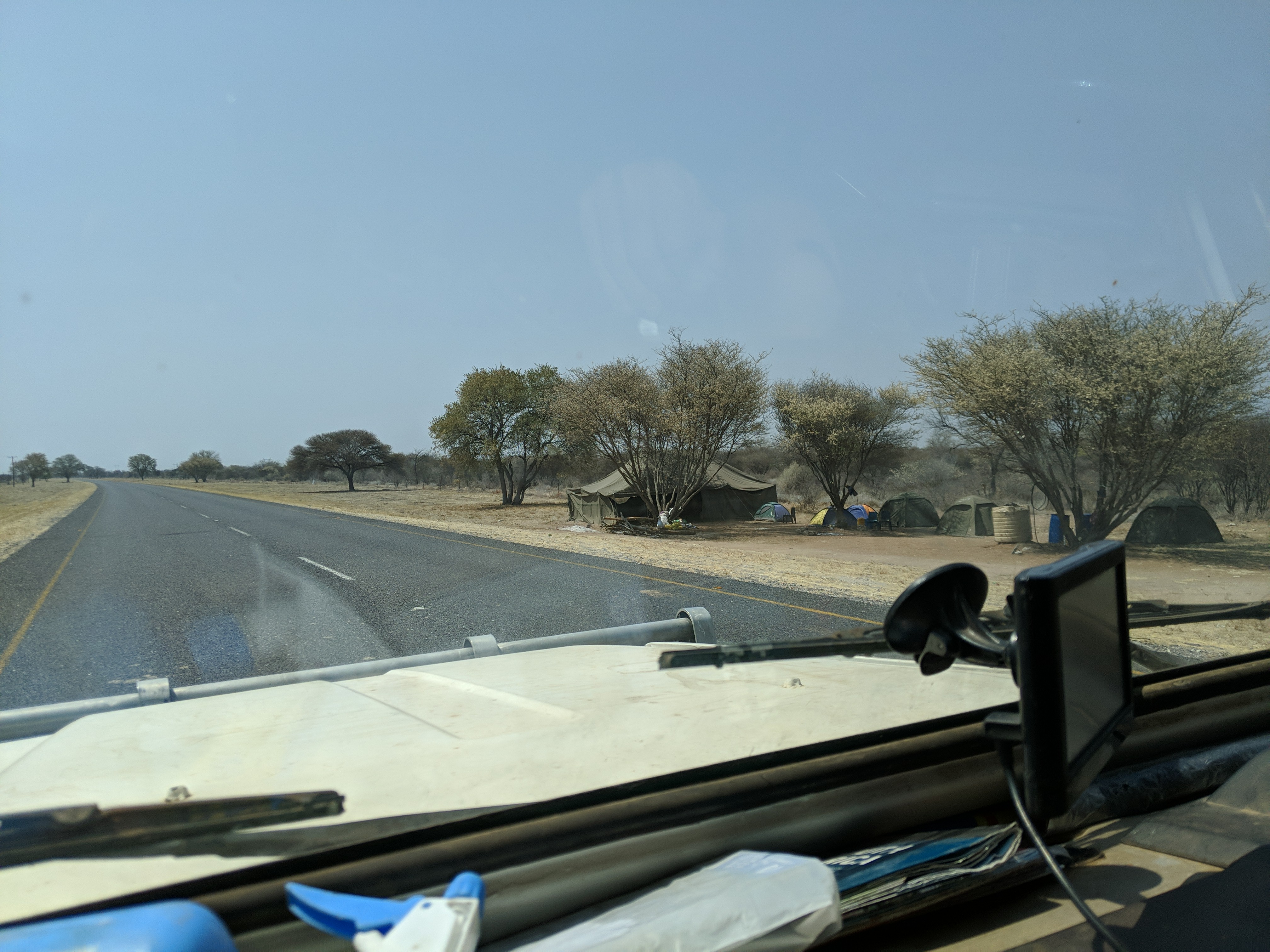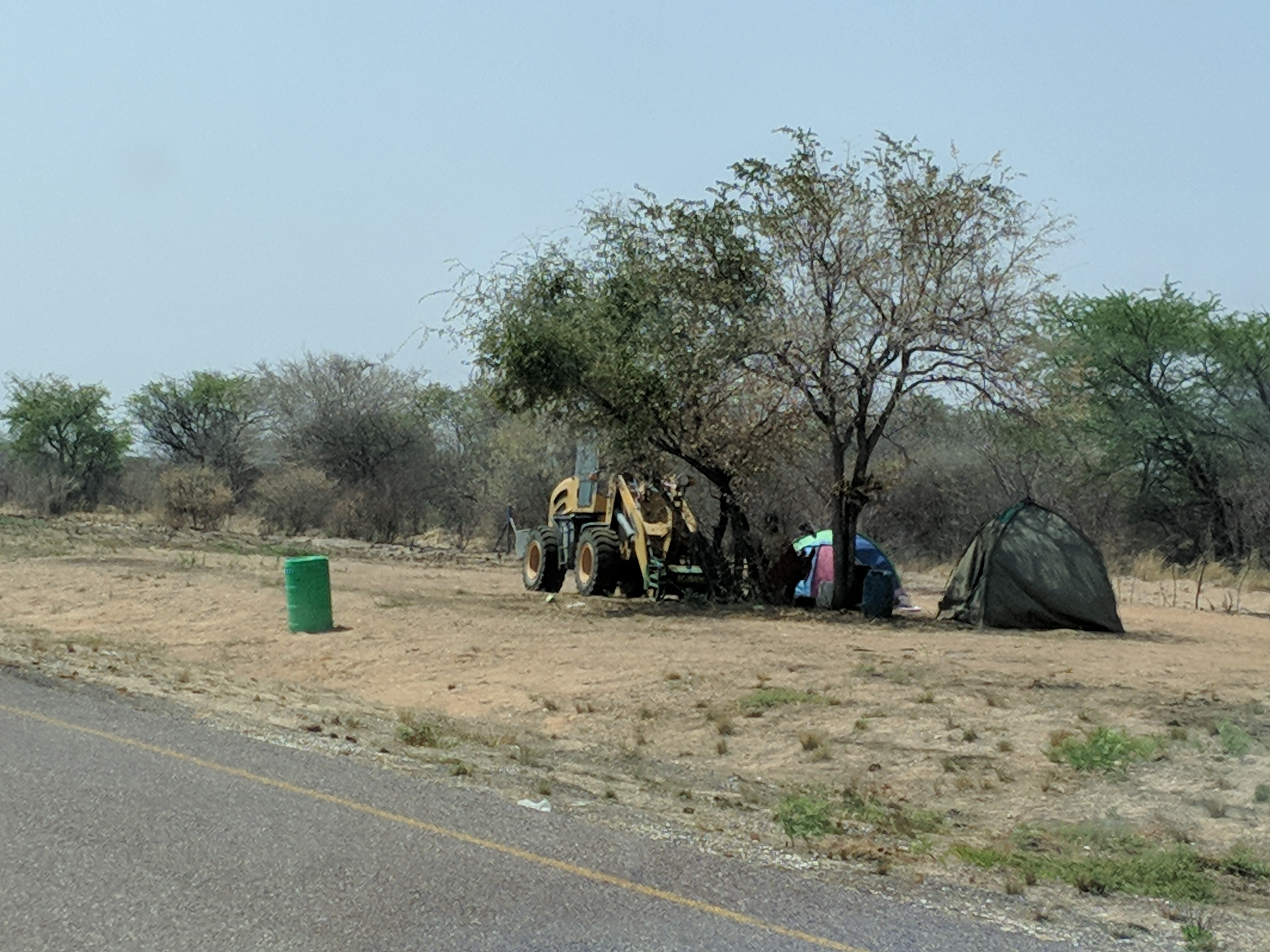 Looks like a reasonable harvest from along this major road in Botswana. But it’s a long road and the road crew was no where near a village or town. Not to worry we’ll get them to make their base on the verge. Seems practical but doubt our road crews would be happy with this arrangement.