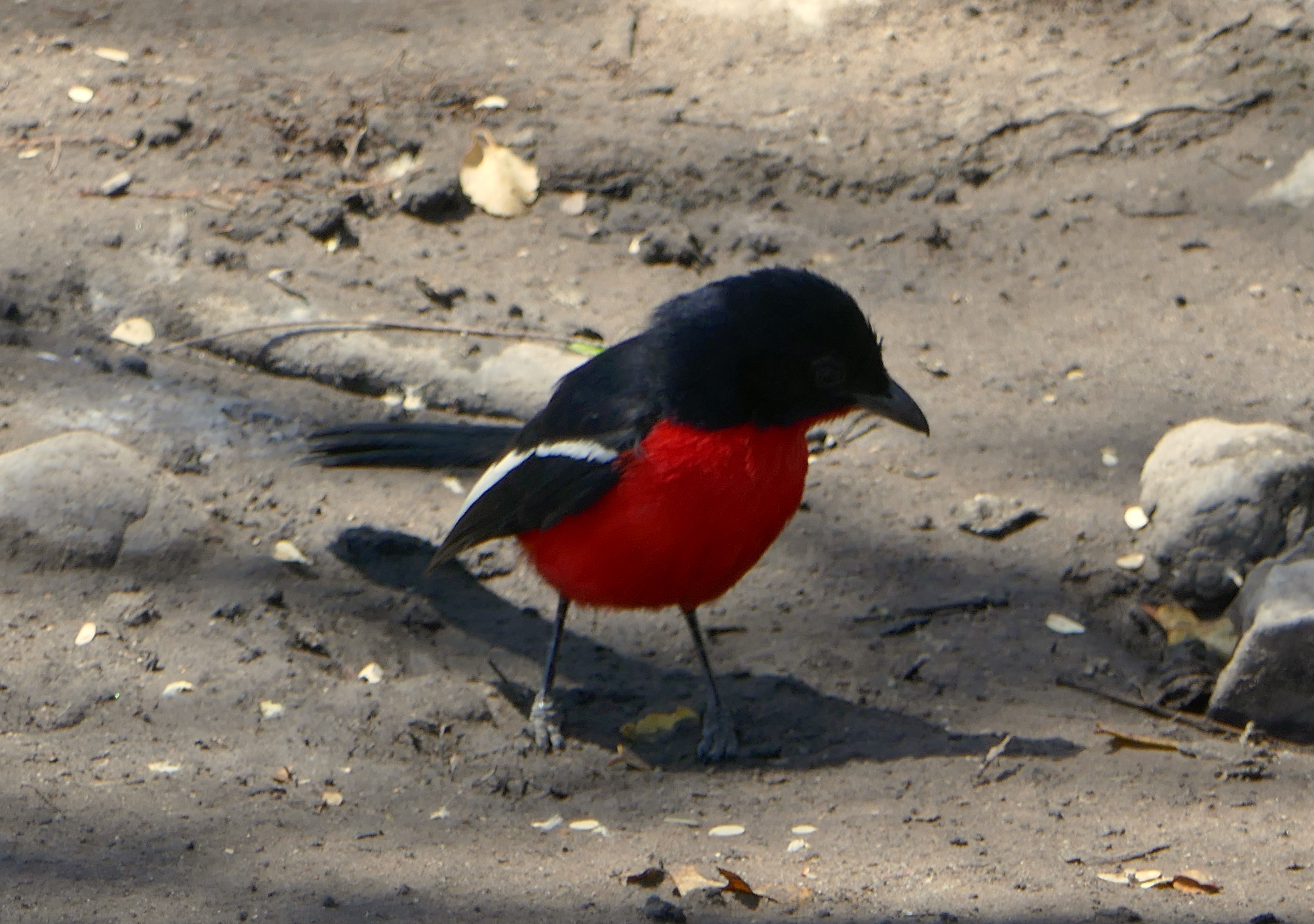 One of the delights of the trip has been getting to know some of southern Africa’s stunning bird life. Here’s 3 that we’ve seen regularly: the red-breasted shrike that darts like a restless flame from tree to tree; the yellow-billed hornbill seen regularly gliding around in the bush; and the white-browed robin chat, which appeared quite curious and prepared to pose patiently for close-ups. The fourth, the African barred owlet, arrived at dusk, observed me occasionally as its head swiveled round, and disappeared as silently as it arrived. More than 500 of birds can be found in the Okavango Delta and my tally so far barely amounts to 40. I need to stay a longer … and get up earlier. πŸ™‚
