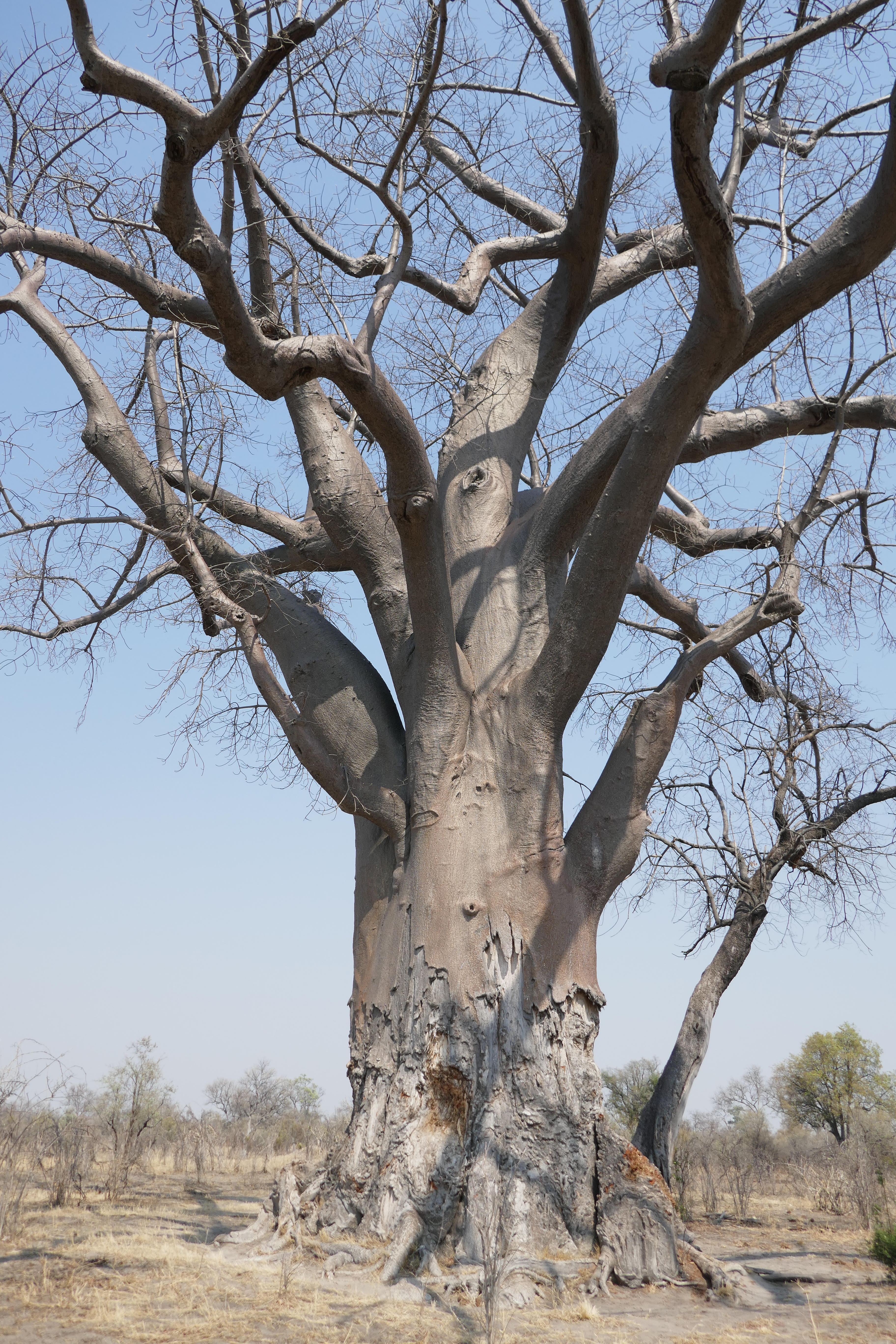 Small or large, with leaves or without, baobabs always impress and have a special majesty. We came across this old tree in Mudumu National Park, which had withstood the attention of elephants for a considerable time. Elephants remove the bark and inner wood for nutrients and stored moisture and will also rub themselves against the trunk. In the process, the tree is whittled away and becomes calloused as it heals. Apparently, elephants enjoy the seeds too, and contribute to spreading the trees across the landscape.