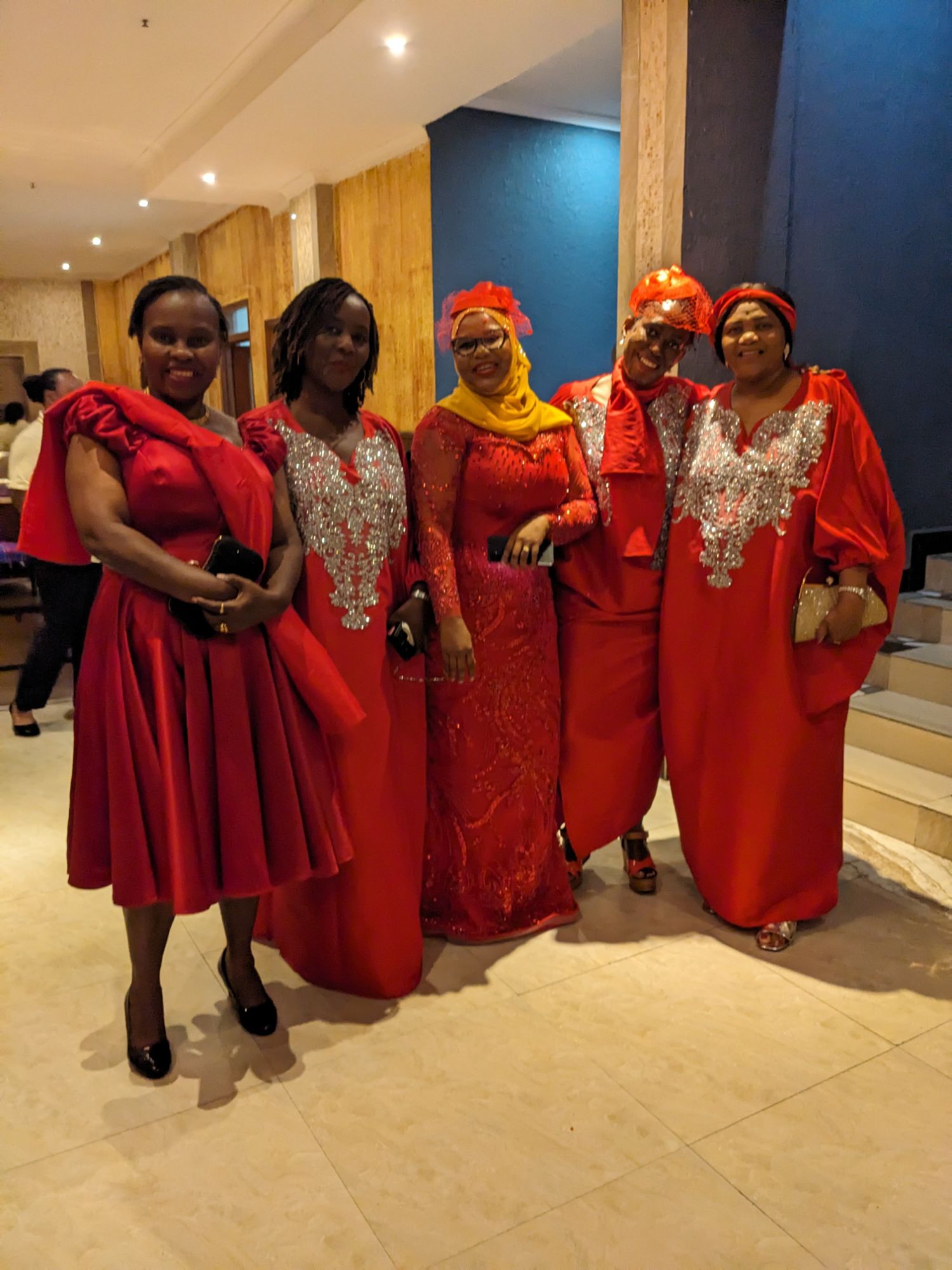 Hanging around the foyer in my hotel in Dar-es-Salaam, I could not help but notice the vibrantly dressed ladies arriving in small groups. Each group was coordinated in their outfits in various ways (part of two groups is shown in the photos), with an overarching theme of red as the required colour for attending a Kitchen Party. The purpose of this gathering was to celebrate a bride’s forthcoming nuptials by gifting her the kitchen items she would need for her new home. Within the choice of eye-catching outfits, some ladies were more traditionally dressed (i.e. long and loosely fitting) and others wore dresses that, as you can see, closely followed the contours of their curvaceous bodily form. I was told the latter was chosen by teenagers, with women above this age adopting a ‘comfortable’ dress code. My observation, across several groups of ladies, was that the figure hugging style was far from being the sole preserve of the teens. Perhaps because I was not wearing a skerrick of red among my drab travel attire, I was not invited to attend. A later glimpse through the function room doors revealed the bride resplendent head to toe in ‘comfortable’ shimmering gold. Best wishes to the bride.