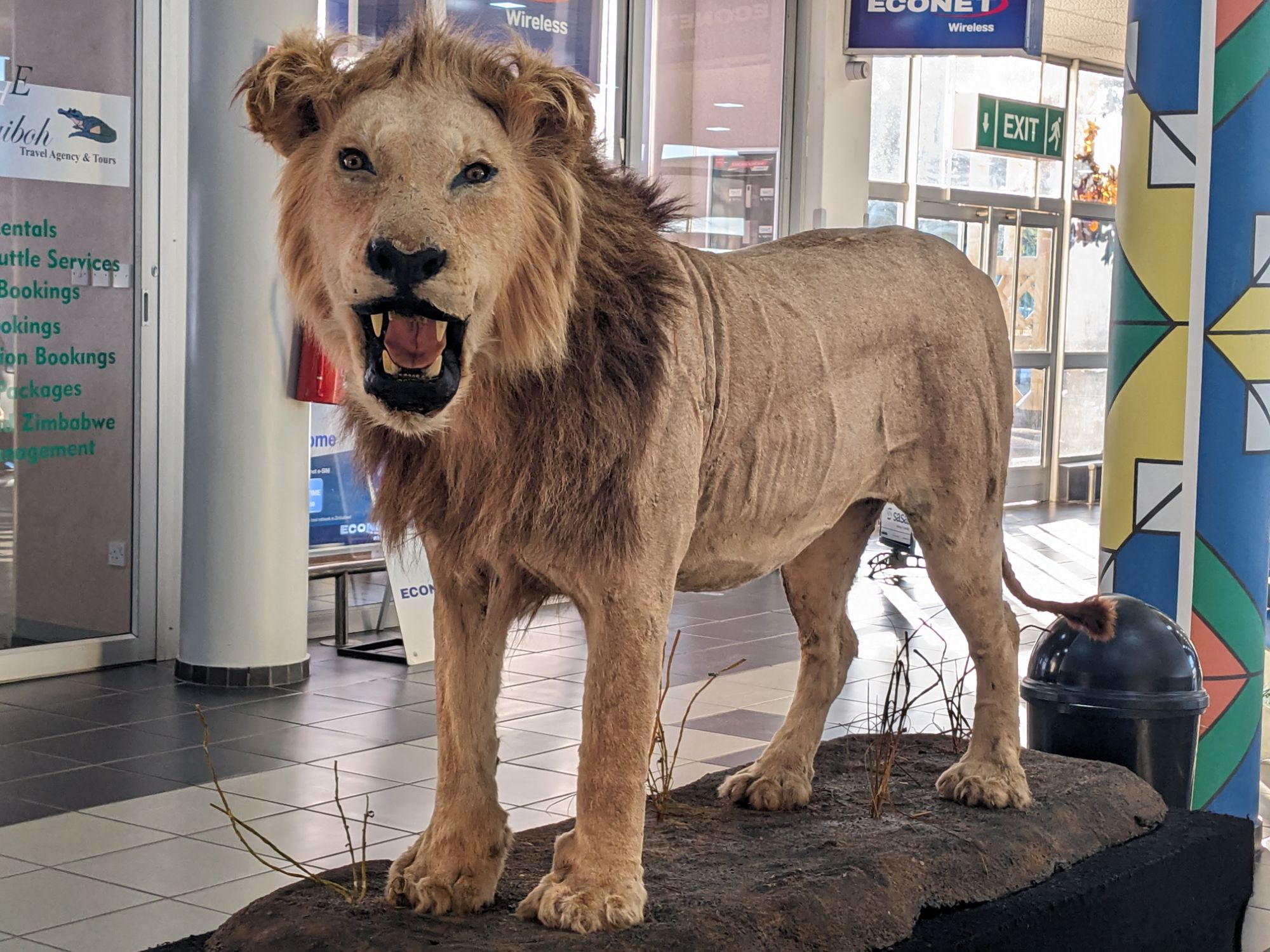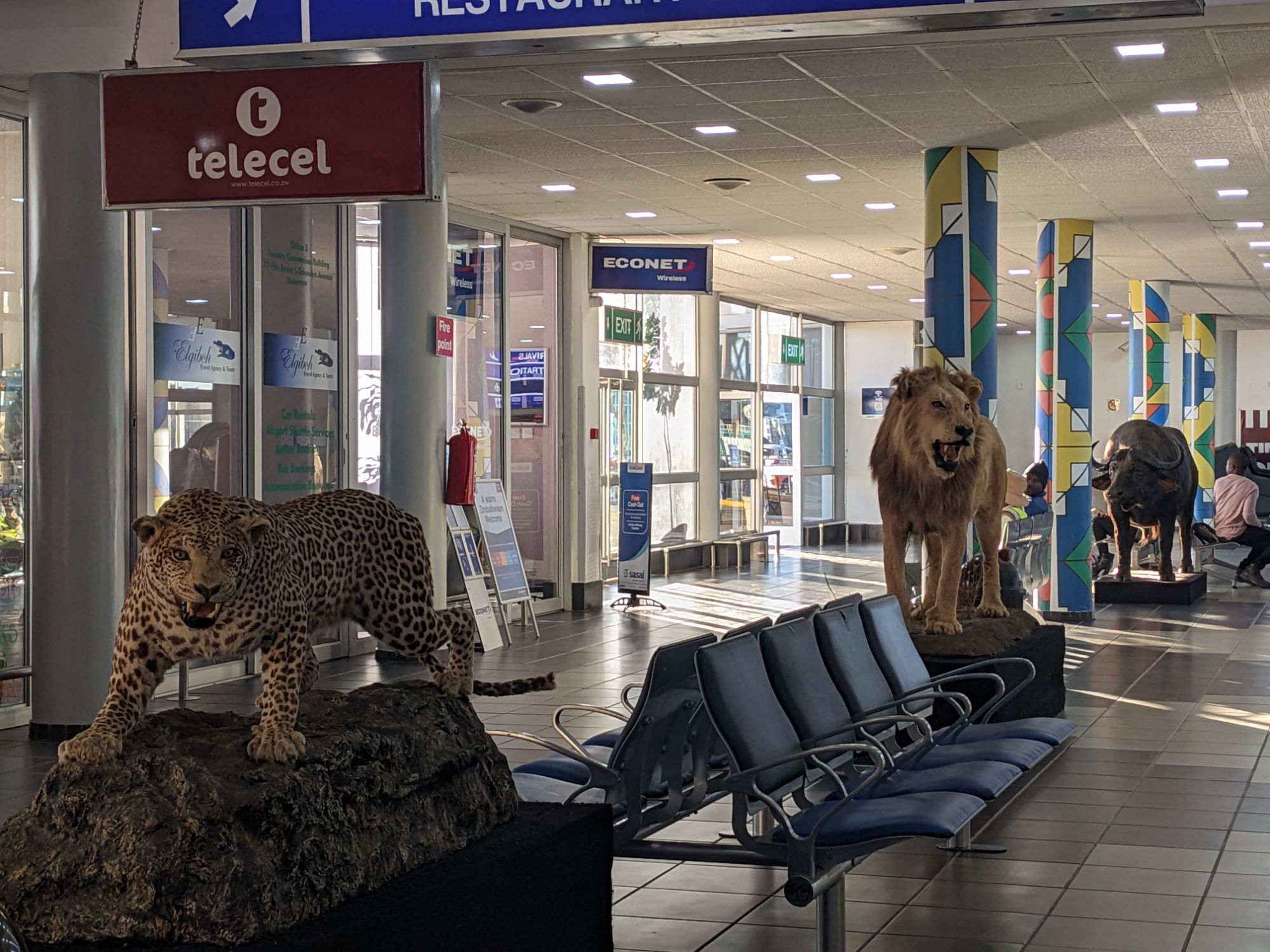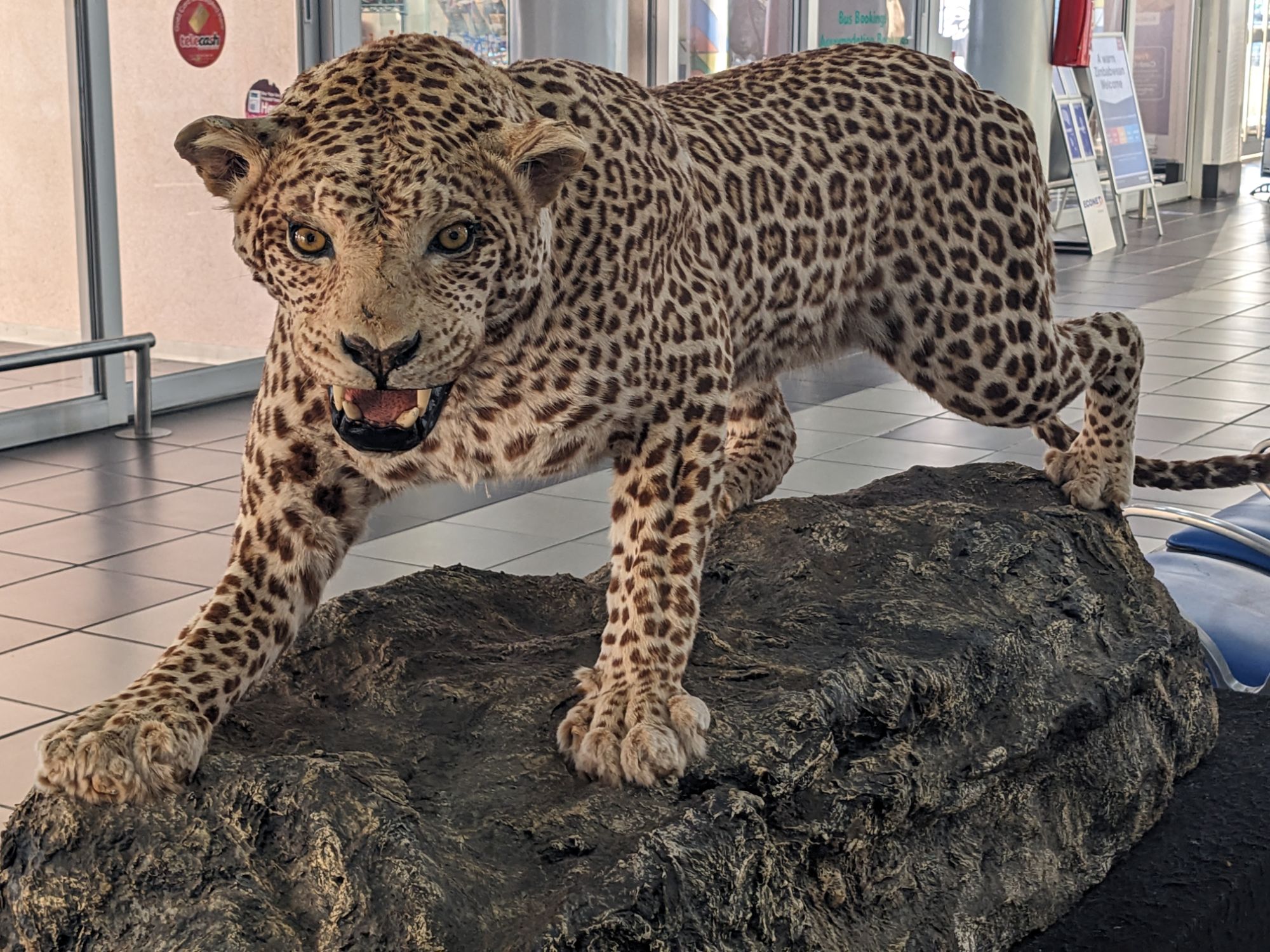 The wildlife at Bulawayo airport. Stuffed animals are macabre and sad. But unlike the moth-eaten specimens in Adelaide’s museum (they may have been replaced by now), these at least were well-preserved and had some semblance of dignity given the sacrifice. Of course, it’s always more enjoyable to see these animals with a beating heart and the vigour of life, but a leopard’s coat is a beautiful thing to behold and not something that can safely be viewed up close. And just look at the paws on these creatures.